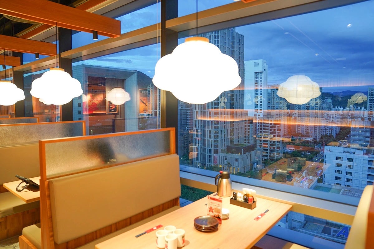 自從家裡養了萌貓,很自然的對一切有貓咪圖案的東西產生好感,聽聞遠百信義A13的14樓開了一家「貓將壽司」,身為貓奴一族當然要來踩點,約了朋友挑了週五晚上下班後來聚餐。「靠窗的景觀座位區,可以看101夜景。」之前有去過貓將壽司的同事推薦,餐廳所在的14樓享有高樓層美景,可270度眺望101,餐廳內的白色日式燈飾像是雲朵般映照在窗景之間,乍看下酷似懸浮在101前的朵朵祥雲。