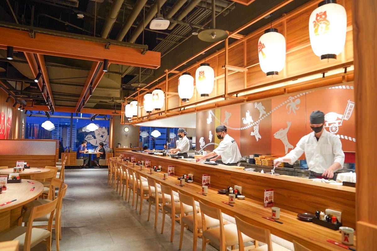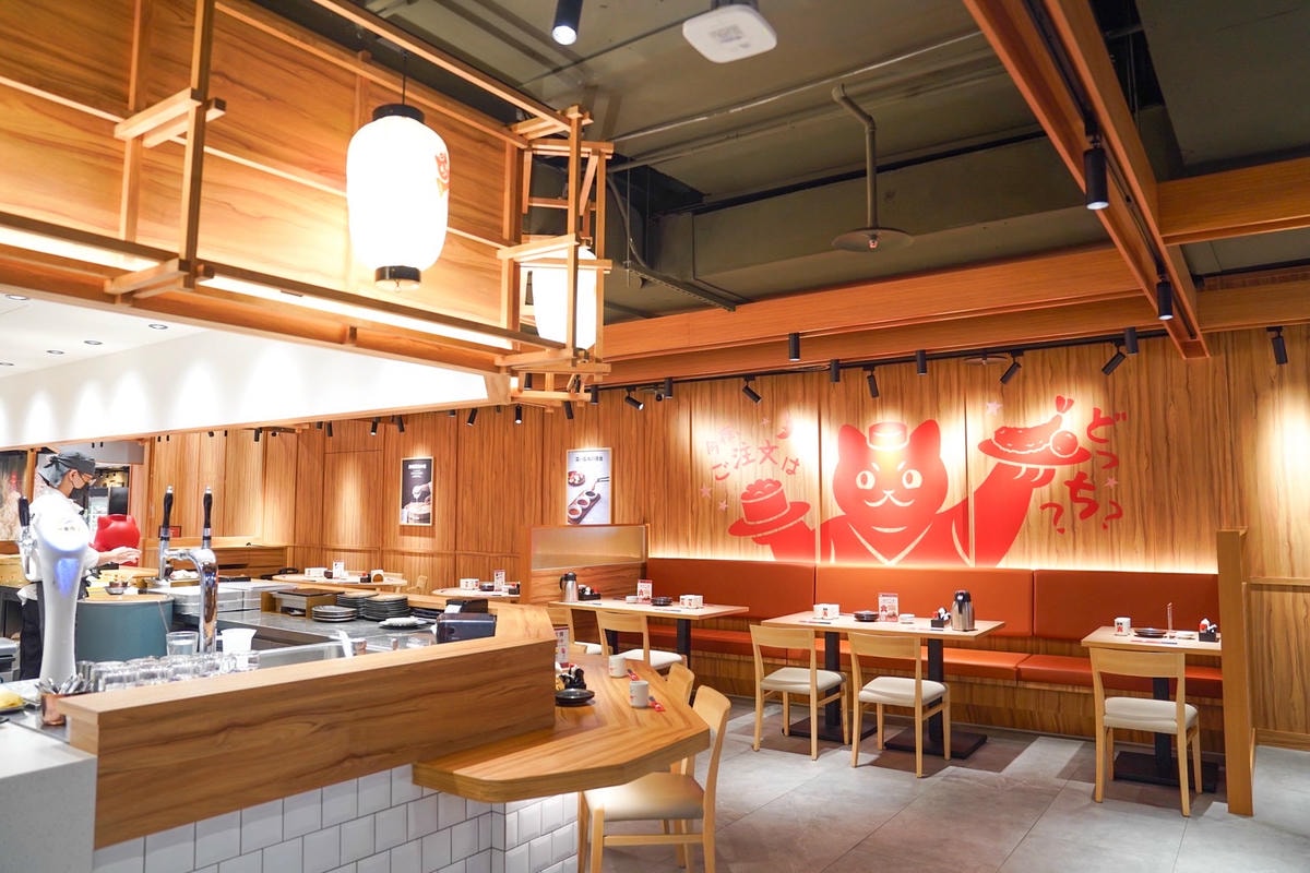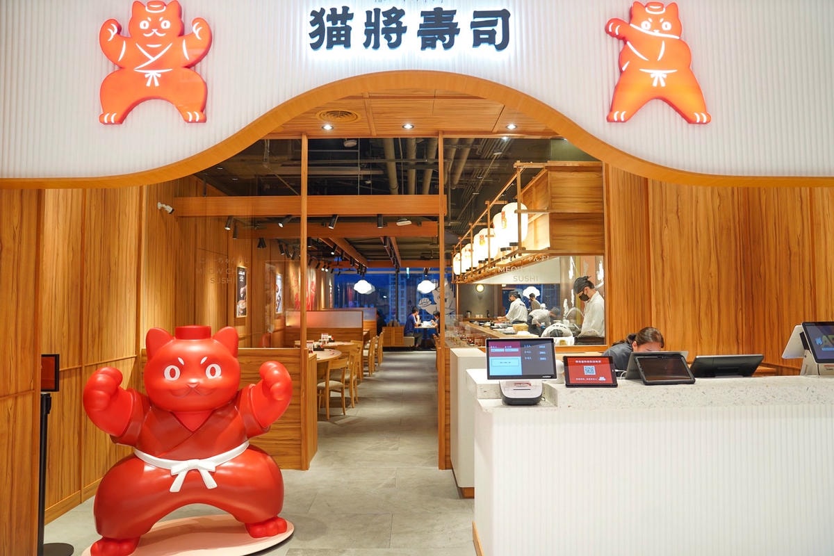 附帶一提,貓將壽司的品牌吉祥物「貓將-諭吉」是一位身懷高超料理技藝的日料師傅,外型是隻有著熱情活潑大眼睛的紅貓,除了出現在店門口以招財貓公仔的姿態迎客,還融入在燈籠、牆面彩繪等設計細節中,是拍照打卡的吸睛亮點!